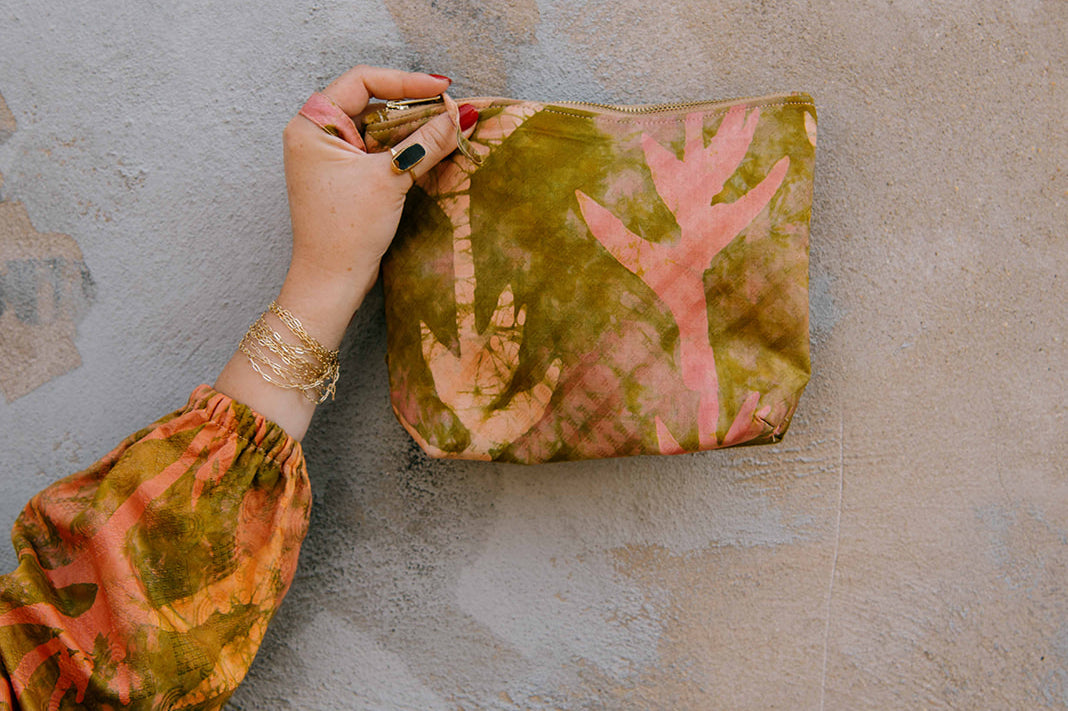 Created in small batches using hand-dyed textiles and sustainable materials in Jamaica, Ghana, and Turkey.