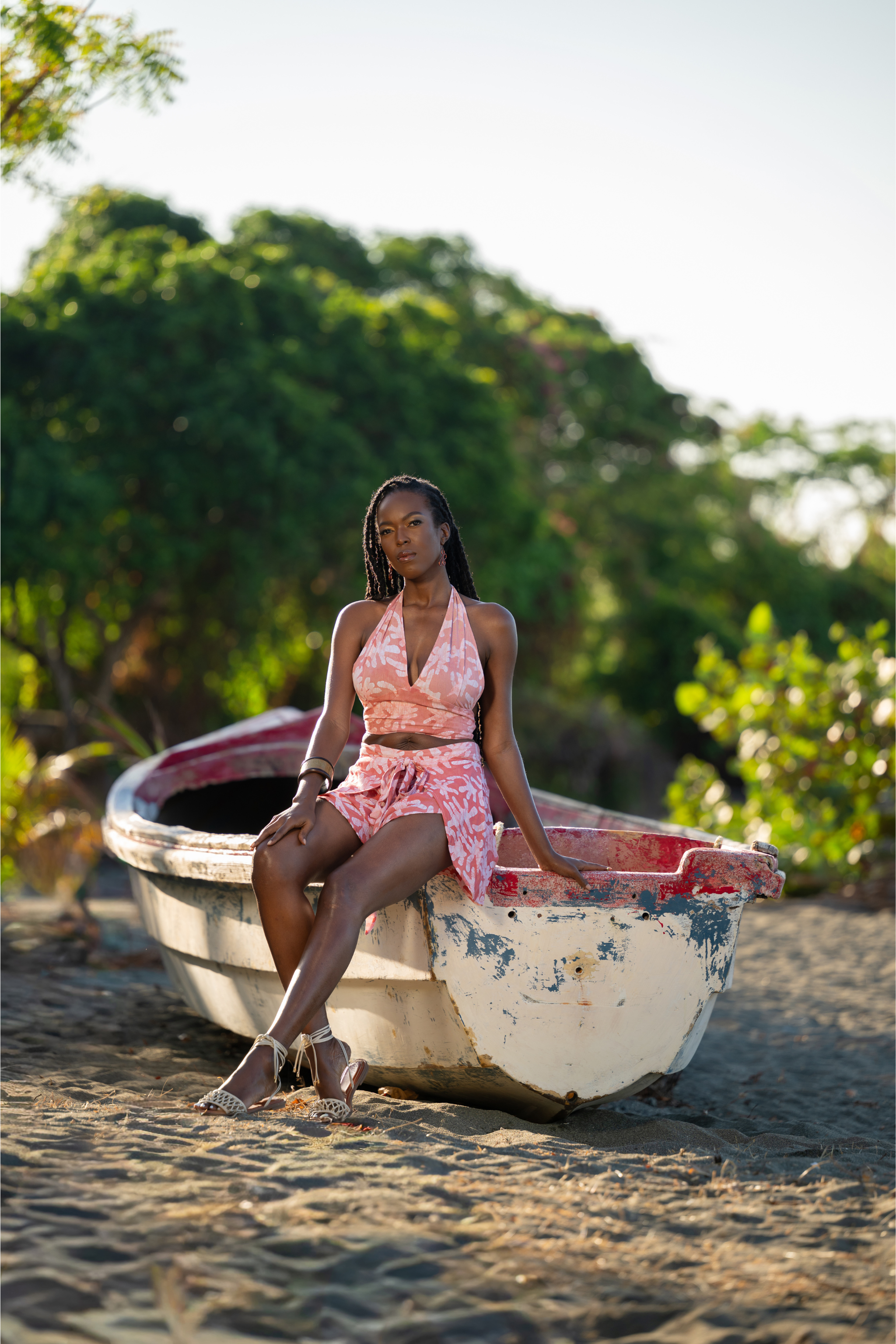 Our favorite Halter Tops are back for the season in new prints and sun-soaked hues. The Coral print in earthy Terracotta is designed to shine in warm weather, offering an adjustable, flattering fit that ties multiple ways. Hand-dyed and sewn in collaboration with local artisans in Jamaica, each piece is a unique expression of Jamaican batik.