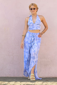 Our sleeveless top introduces a fresh silhouette designed for warm-weather dressing. Featuring a cutout back & tie, and soft flowing slits. This style moves easily from daytime gatherings to coastal afternoons. Offered in three colorways and designed to pair with our wrap pants and wrap shorts, each piece is hand-dyed and sewn in Jamaica with local artisans, resulting in a uniquely Jamaican batik finish.