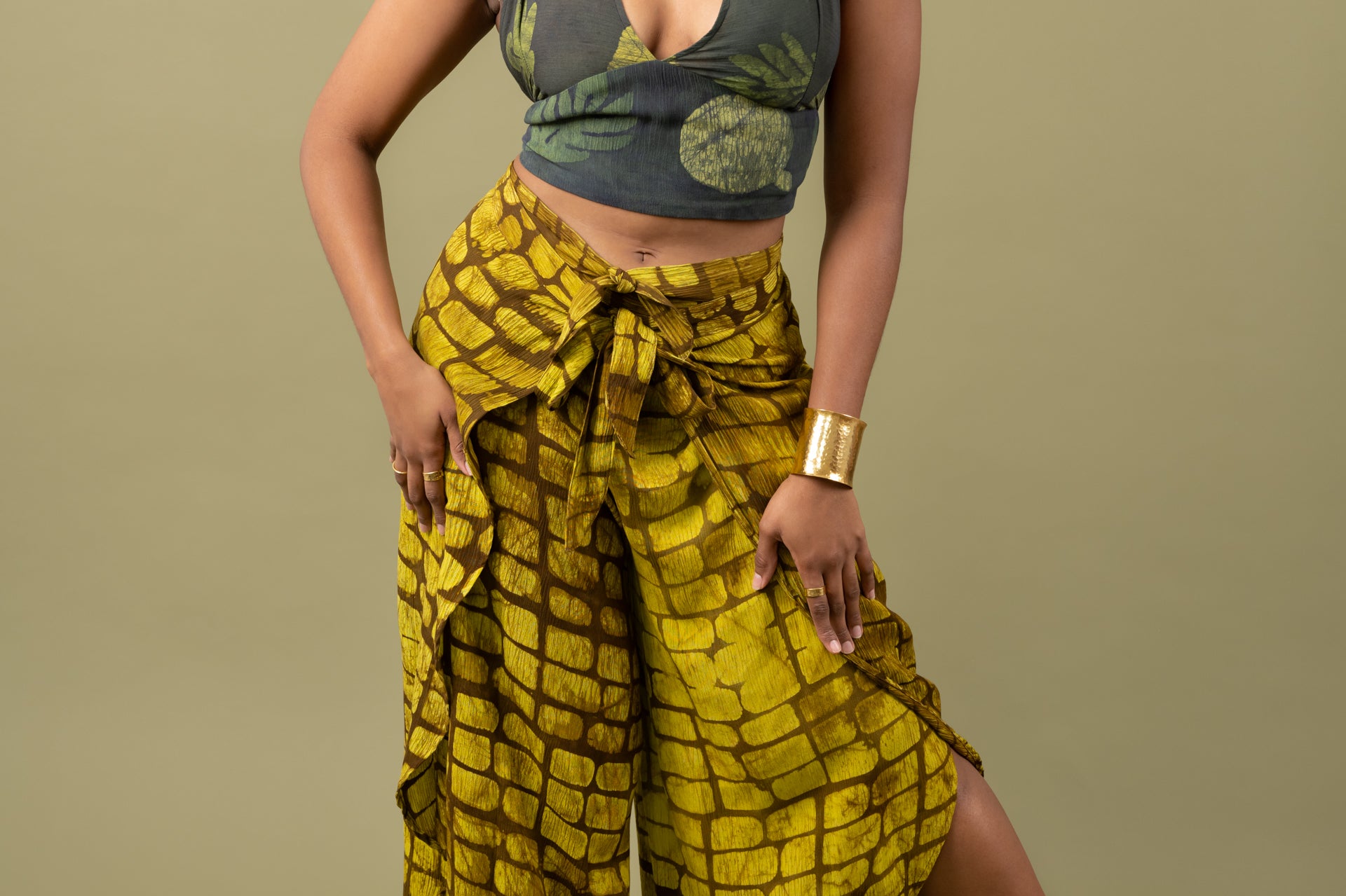 Introducing the Breadfruit Halter Top – perfect for soaking up the summer sun! This versatile piece flatters all sizes with its adjustable ties, the vibrant green and chartreuse leafy print guarantees you'll be the standout star at any summer event. Crafted from sustainably sourced deadstock rayon, each top is meticulously hand-dyed and sewn in Jamaica, embodying the lively spirit of the island in every stitch.