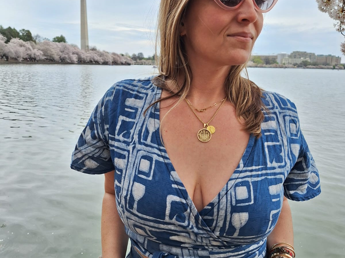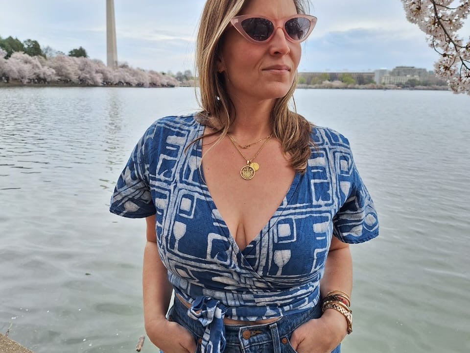 The Coco Blue Wrap Top in blue is a versatile wrap that closes to create a beautiful v-neck with a cinched waistline. This simple yet elegant wrap top is made from jacquard cotton fabric, hand-dyed and batiked in Ghana. Designed for multiple occasions and climates, wear yours in the summer with a lightweight skirt or pair it with jeans and a jacket for cooler climes.